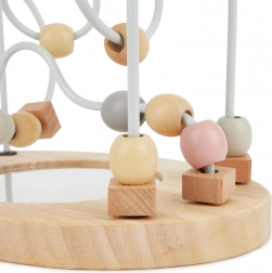 Ce labyrinthe moteur élégant dans des tons roses est un jouet idéal pour les premières compétences. En déplaçant les perles le long des pistes métalliques, les enfants exercent la prise, la patience et la perception spatiale. Le miroir central capte l’attention et soutient la conscience de soi ainsi que la perception sensorielle.