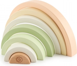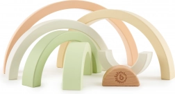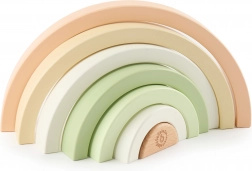 Ce bel arc-en-ciel empilable avec 7 arcs aux tons doux est idéal pour le jeu libre. Les enfants peuvent empiler, trier, imbriquer les arcs ou construire des structures originales. Le jouet évolue avec l’enfant – il devient un berceau pour poupées, une clôture pour animaux, un tunnel ou un pont pour véhicules, ainsi qu’une maison pour peluches.
