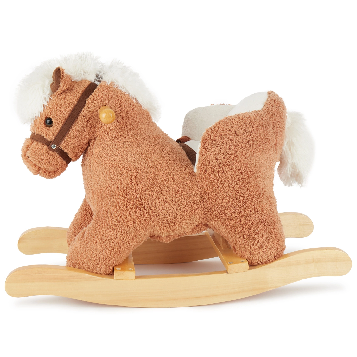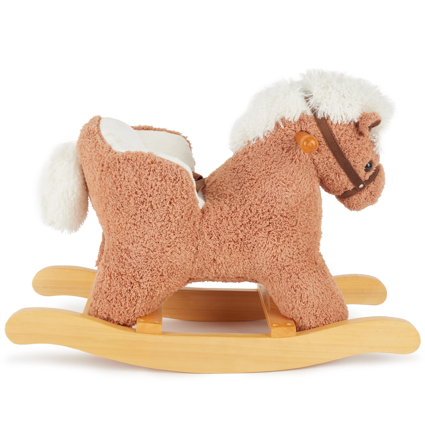Adorable cheval à bascule Bieco pour enfants dès 9 mois, offrant une douce finition en peluche, une structure robuste en bois et un siège rembourré confortable avec ceinture de sécurité. Favorise le développement de la motricité et de l’équilibre et garantit un jeu en toute sécurité grâce à la faible hauteur d’assise et à la protection contre le basculement.