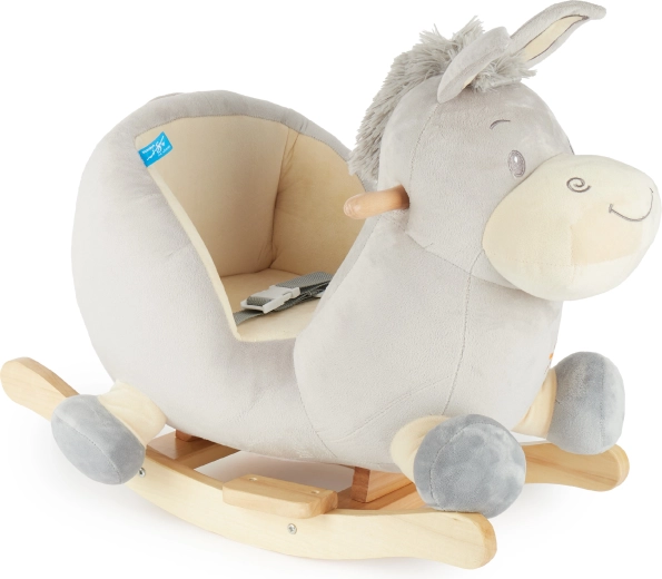 Le mignon âne à bascule Fips de la marque BIECO ravira les enfants dès 9 mois. Il offre un siège rembourré doux avec ceinture de sécurité, une structure en bois stable avec protection contre le basculement et une surface en peluche douce pour un confort maximal. Le balancement développe naturellement la motricité et l’équilibre, tandis que les poignées et repose‑pieds en bois assurent une balade sûre et stable.