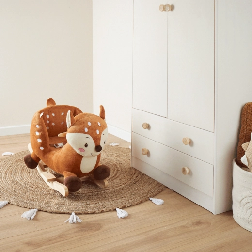 La surface en peluche invite aux câlins et fait du faon un bel élément décoratif pour la chambre d’enfant. Le mouvement de bascule développe naturellement la motricité globale, la coordination et l’équilibre. Sa fabrication robuste garantit une longue durée de vie et une utilisation sûre au quotidien.