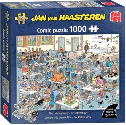Explorez un univers plein d’humour avec le puzzle JUMBO Jan van Haasteren – Exposition féline. L’auteur est connu pour son style distinctif, riche en détails colorés, situations amusantes et une multitude de personnages qui vous feront sourire à chaque assemblage. Les fans avertis chercheront des éléments iconiques tels que la nageoire de requin, les mains errantes, le dentier, Saint-Nicolas et même le portrait de l’auteur.