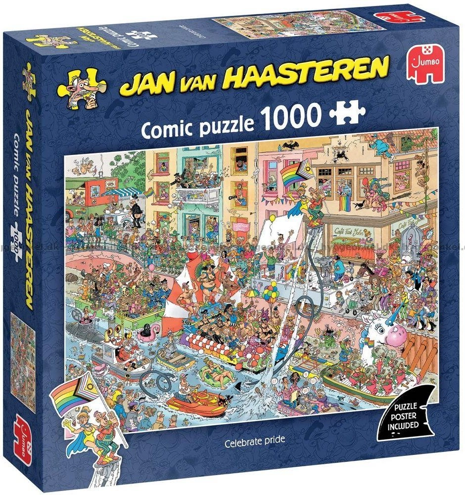 L’illustration inclut les motifs favoris de l’auteur : la nageoire de requin, des mains “perdues”, un denture, Saint-Nicolas ainsi que l’autoportrait de l’artiste lui-même. Grâce à la qualité de fabrication de la marque Jumbo, les pièces s’assemblent parfaitement et conservent leur forme.