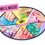 Mélangez, étirez et malaxez. Les différentes couleurs, paillettes et perles créent des effets captivants et une riche expérience tactile.