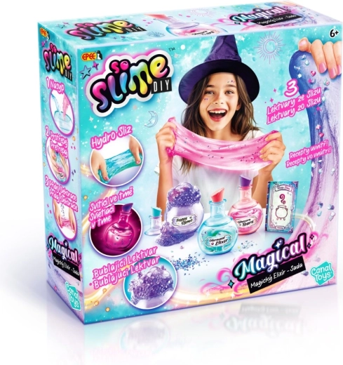Les élixirs se conservent dans 3 fioles design, à personnaliser avec des autocollants et à embellir avec des décorations pour slime. Le kit stimule la créativité, la motricité fine et l’expérimentation, tandis que le slime fini peut être étiré, pressé et modelé pour une détente sensorielle.