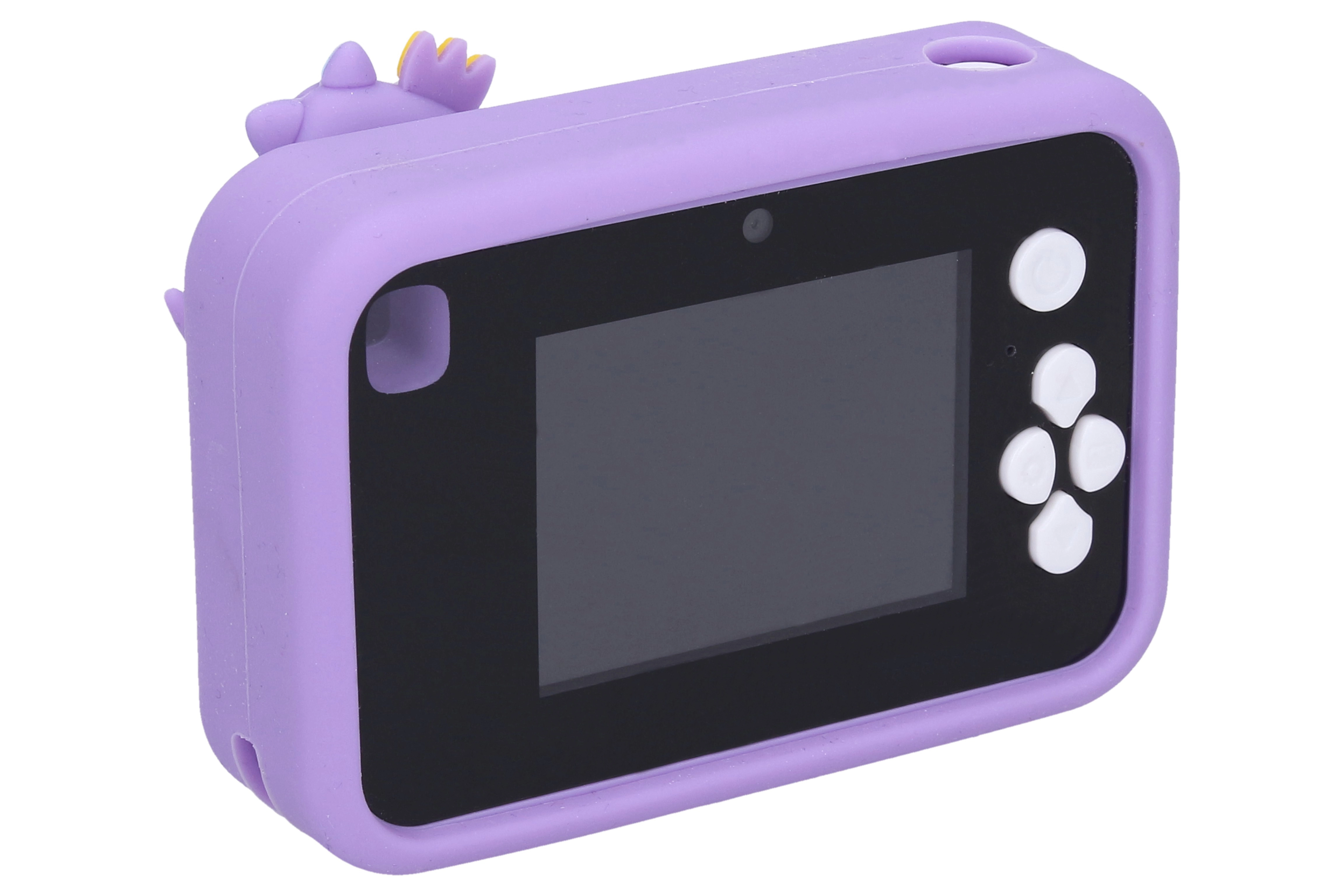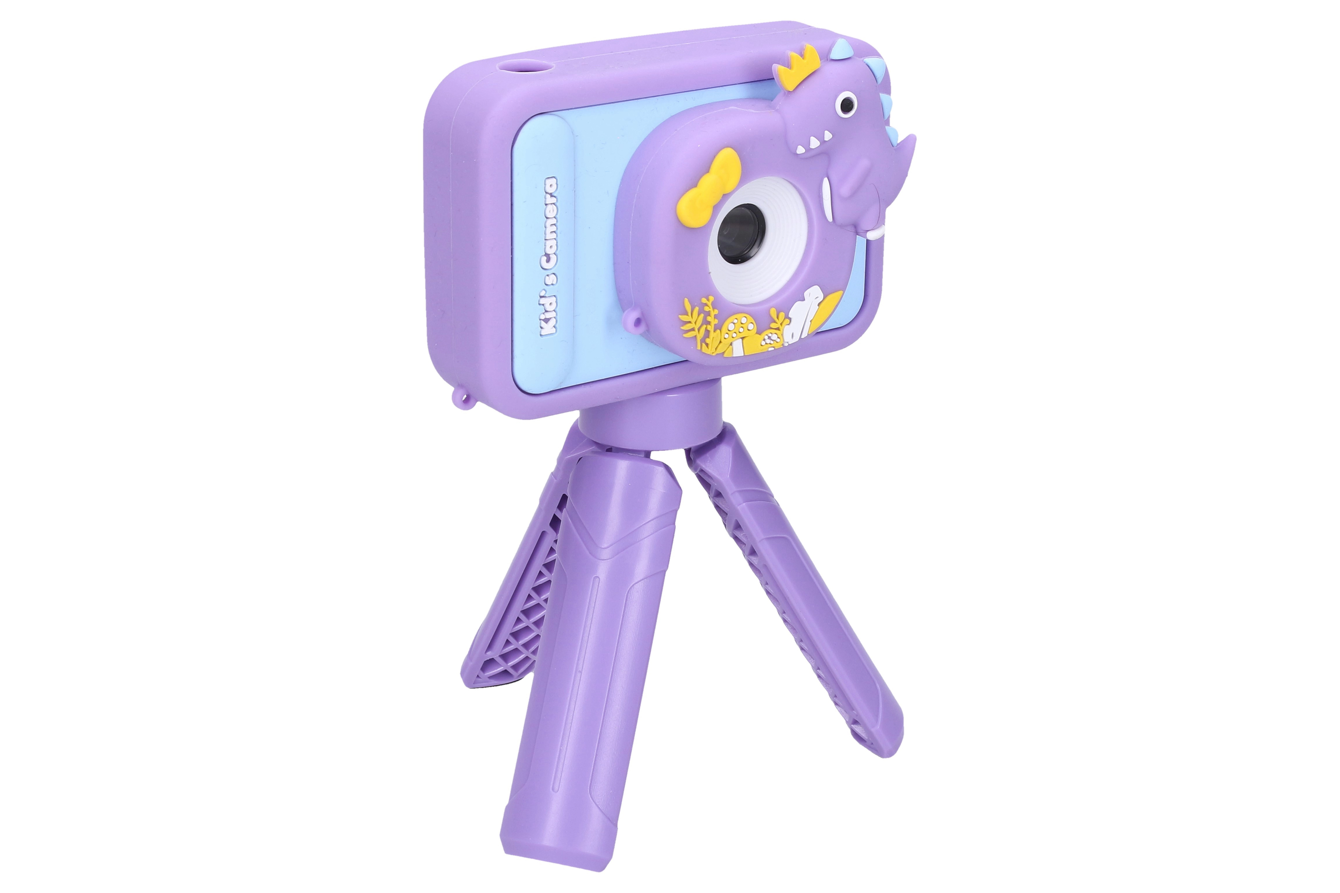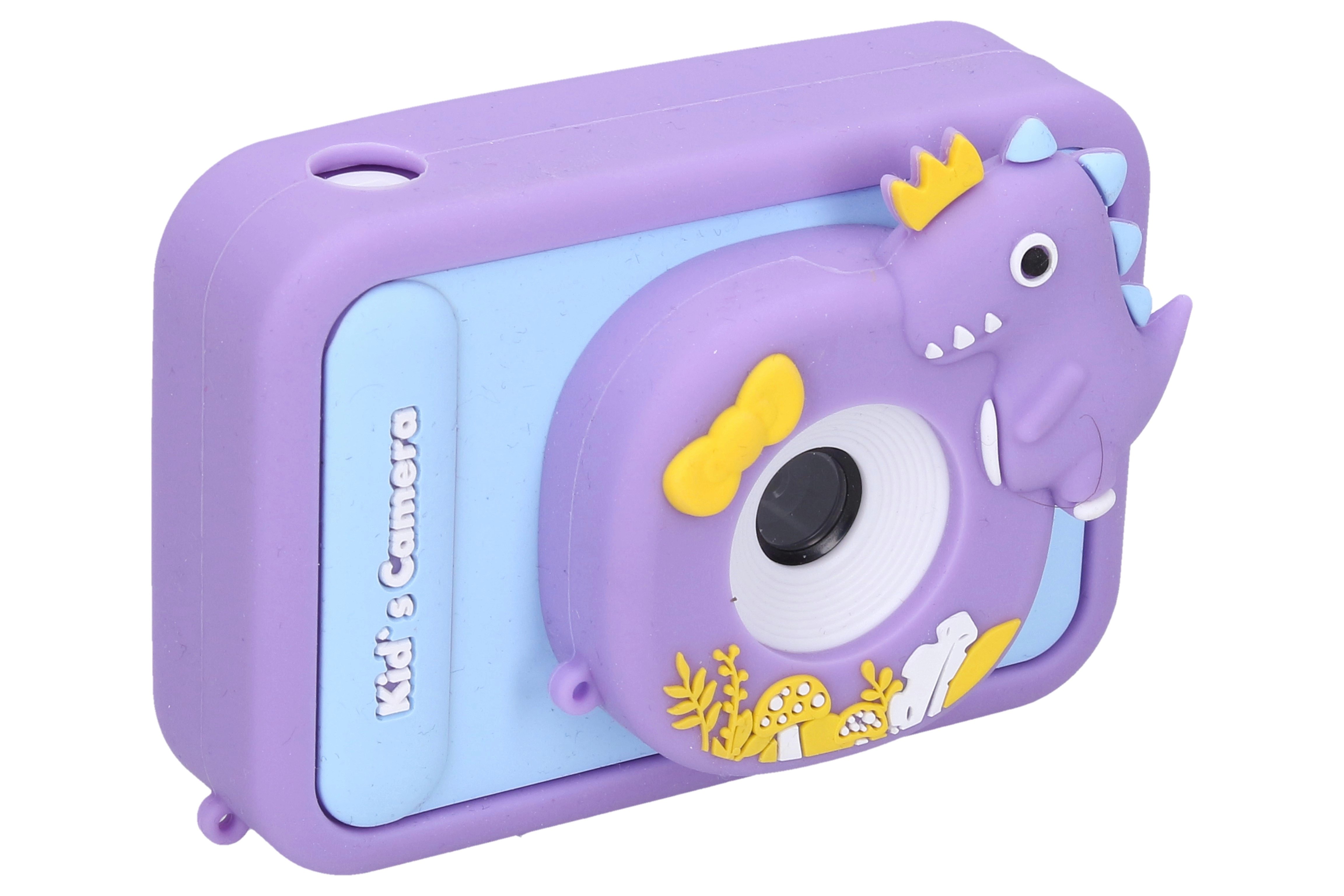 Facile à utiliser, cet appareil photo pour enfants est conçu pour les petits photographes : il possède un étui en silicone à motif dinosaure, des dimensions compactes de 10 × 4,5 × 7 cm et des formes antidérapantes pour une prise en main sûre. Grâce à la résolution 48 Mpx, il réalise des clichés nets et de la vidéo Full HD (1920 × 1080) riche en détails. Un écran LCD 2,4" facilite la visualisation et les réglages.