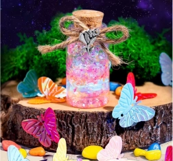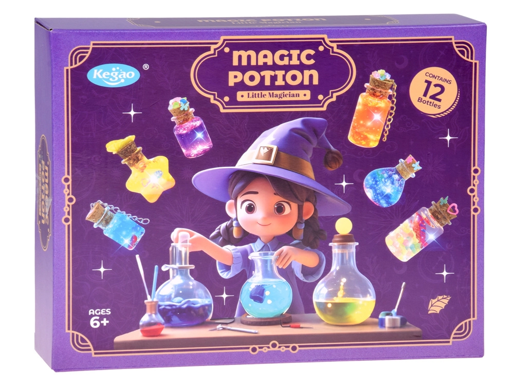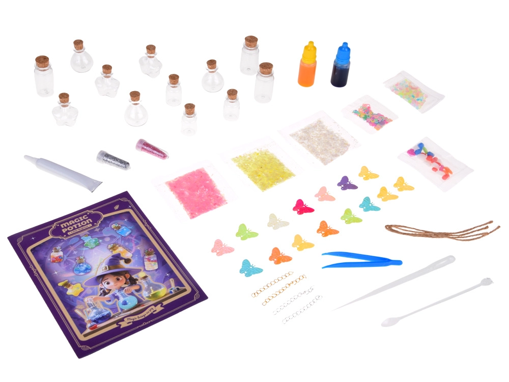 Découvrez comme il est simple et amusant de créer vos propres potions décoratives ! Ce coffret créatif pour enfants comprend de mini fioles en verre avec bouchon en liège, des paillettes, des pigments, des décors à sequins, des pendentifs papillon et des outils pratiques pour un dosage précis. Les enfants entraînent leur motricité fine, leur créativité et leur imagination en mélangeant les couleurs, en remplissant et en décorant des élixirs magiques.