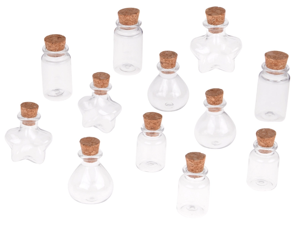 Verre transparent aux formes diverses (rouleau, goutte, étoile, etc.) pour un bel effet de potion. Idéal pour les paillettes, perles et liquides colorés.