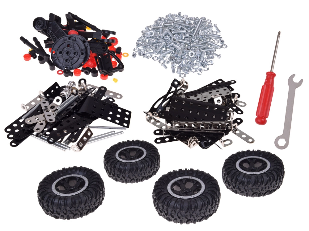 Construisez votre propre camion tout-terrain à partir de pièces métalliques résistantes et de roues en caoutchouc. Le kit avec 475 éléments développe la dextérité manuelle, la pensée logique et initie aux principes de la mécanique et de l’ingénierie. La boîte contient vis, écrous, accessoires en plastique et outils de base pour un assemblage facile.