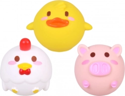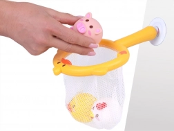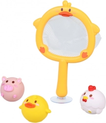 Épuisette avec ventouse + 3 animaux en caoutchouc (canard, petit cochon, poulette)