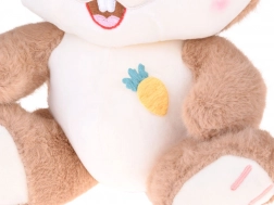 Le lapin en peluche Karmelek se distingue par son pelage caramel tout doux et son expression tendre avec de mignons petites dents. Les oreilles flexibles, grâce au renfort cousu, se positionnent facilement – le lapin change ainsi d’expression à volonté. Le ventre crème avec une broderie discrète (carotte/ananas) ajoute un détail plein de charme.