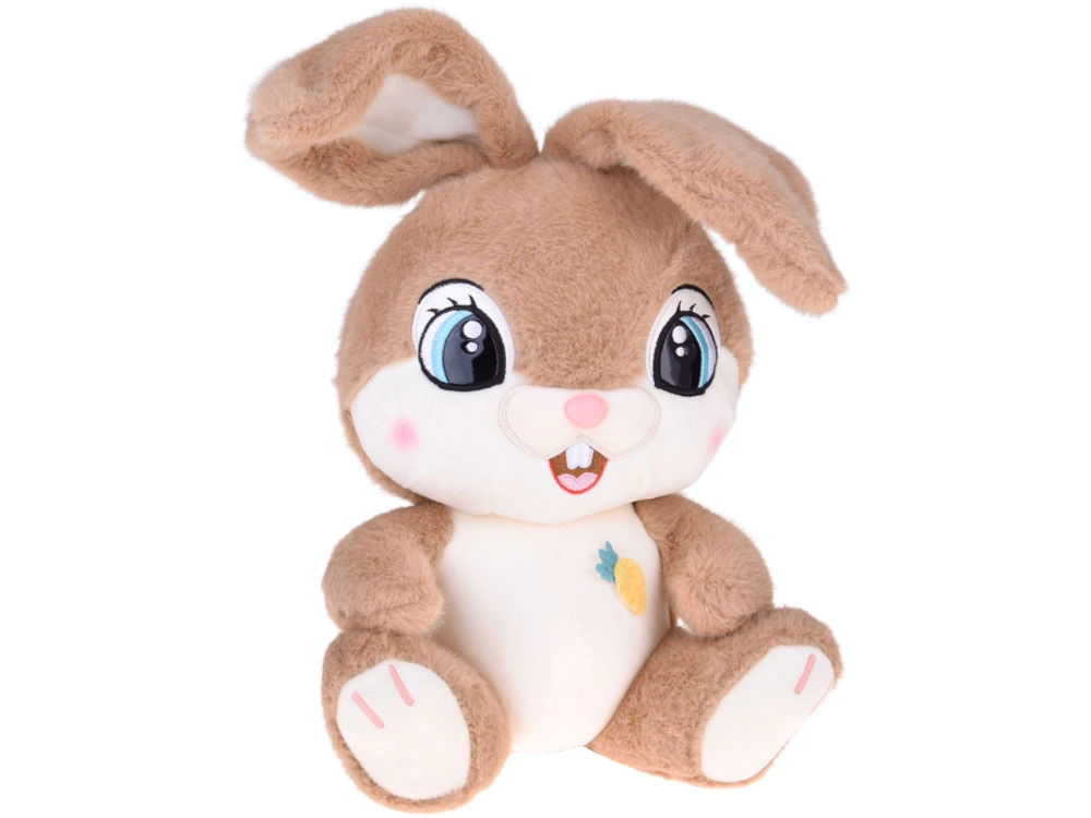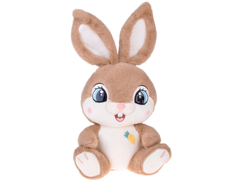 Adorable lapin en peluche Karmelek de 40 cm, un compagnon tout doux pour les câlins. Il a une fourrure caramel toute moelleuse, de grands yeux brodés, de longues oreilles flexibles et un petit ventre crème avec une broderie délicate. Idéal comme cadeau pour enfants, il apporte un sentiment de sécurité, de la joie de jouer et une jolie décoration pour la chambre d’enfant.