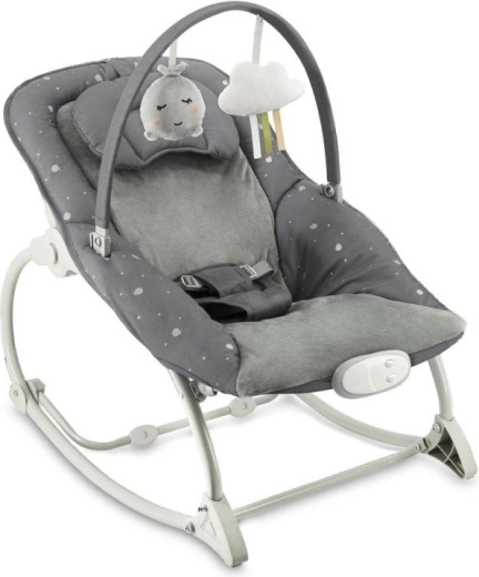 Le transat MoMi LAPIS allie un bercement apaisant à un grand confort d’usage et à la sécurité. Le module sensoriel avec mélodies et vibrations aide à calmer bébé, tandis que l’arche avec deux jouets stimule les sens et favorise le développement de la motricité. Grâce au réglage du dossier en 3 positions, vous adaptez facilement la posture pour la détente ou le repas.