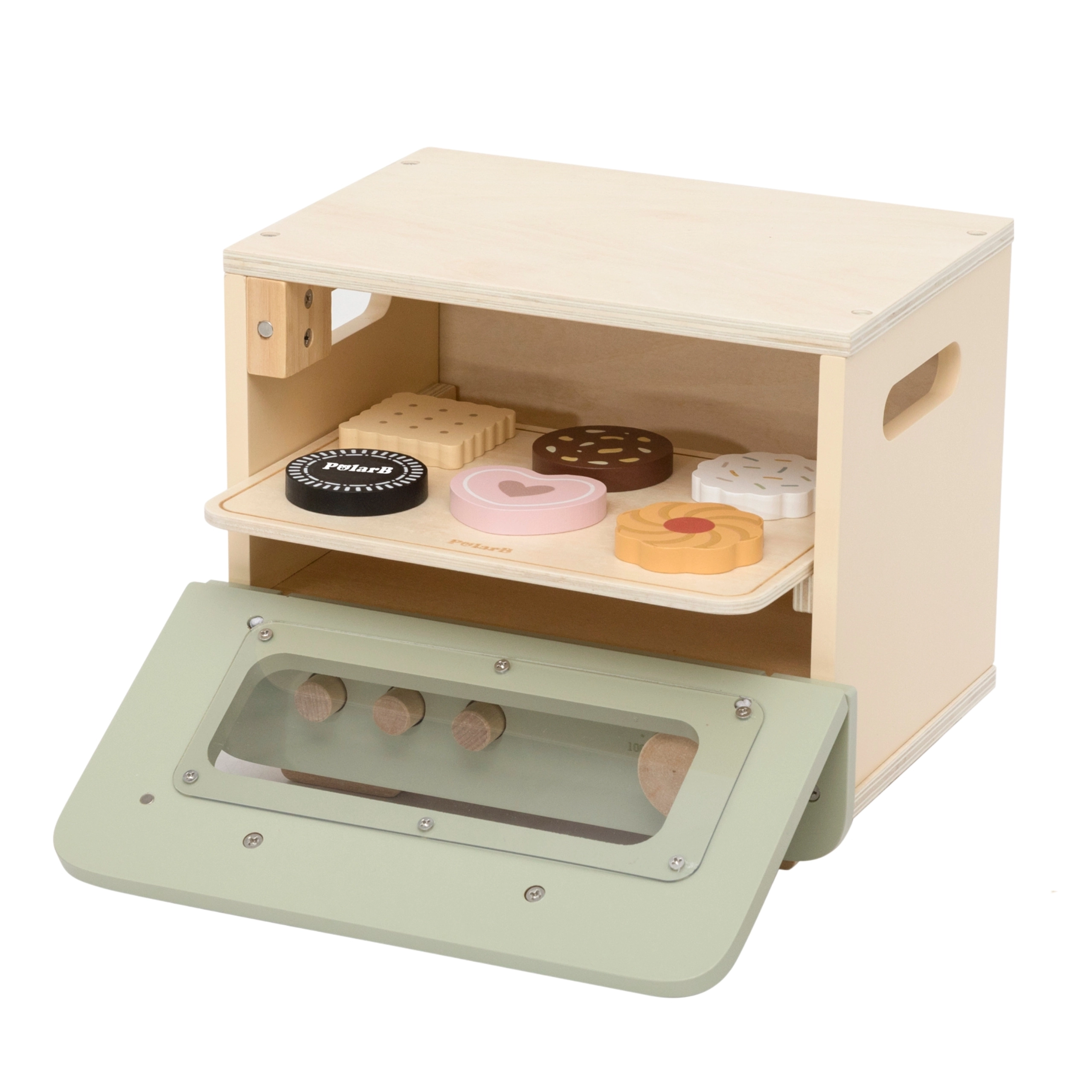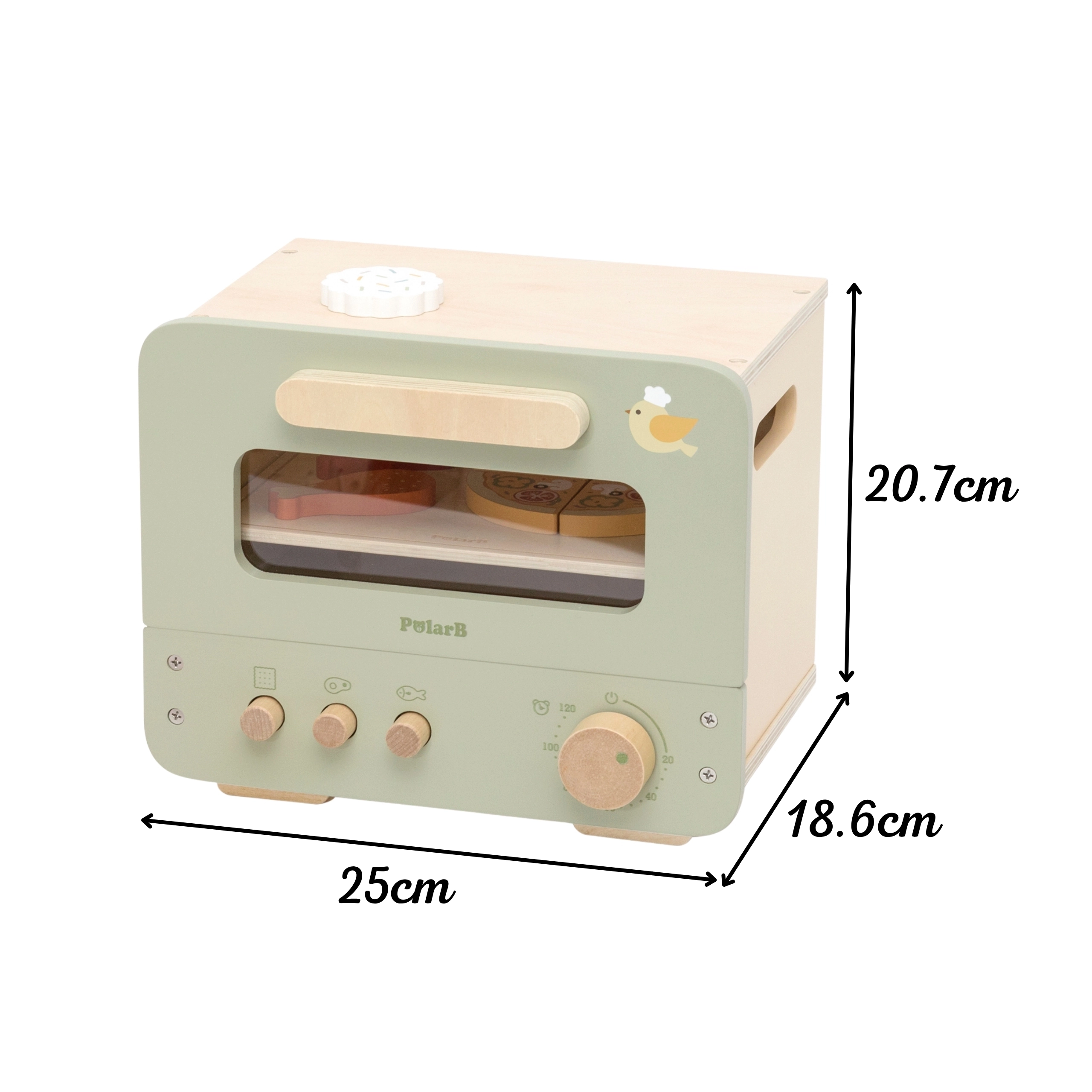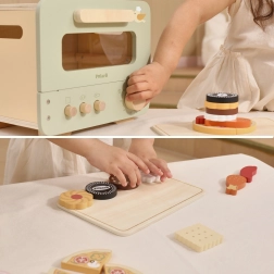 Ce four pour enfants au style vert et beige offre une expérience de cuisson authentique. Sa fenêtre transparente, ses boutons fonctionnels et sa plaque amovible invitent à servir avec imagination des douceurs sucrées et salées. Les enfants peuvent couper et assembler la mini pizza, cuire des biscuits et entraîner leur dextérité ainsi que leur communication lors des jeux de rôles.