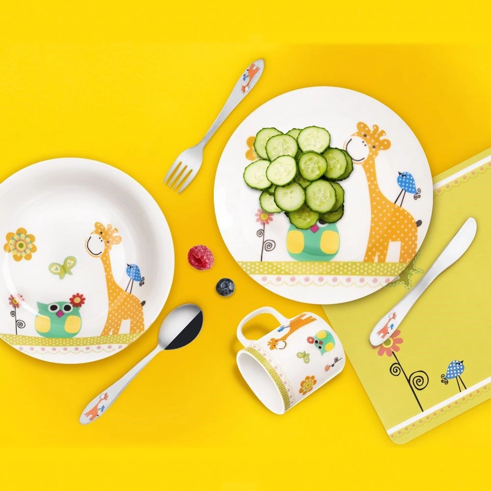 Set petit-déjeuner pour enfants en porcelaine, girafe, 3 pièces