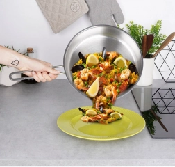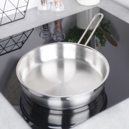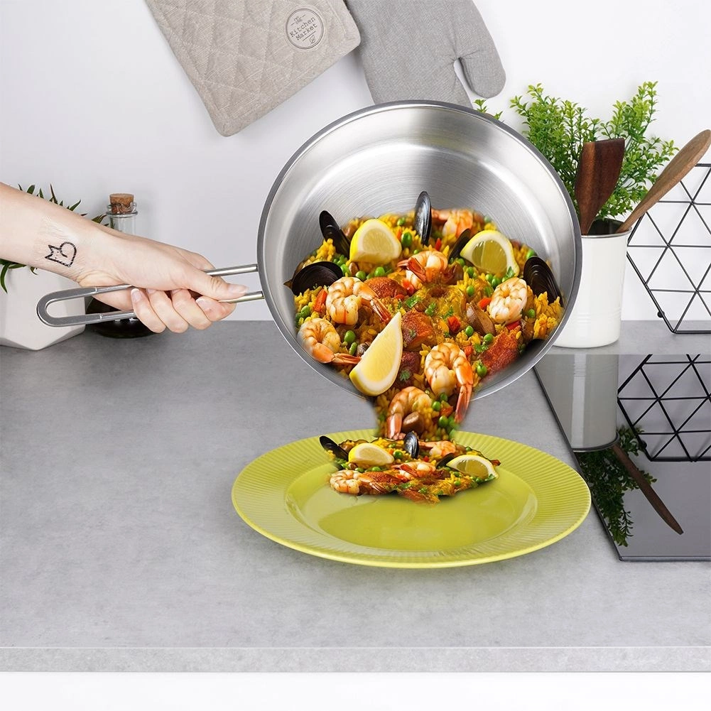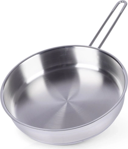 Cette poêle en inox au design intemporel est un excellent choix pour préparer viandes, légumes et crêpes. Fabriquée en acier inoxydable de qualité avec surface mate et élégant liseré poli sur le bord supérieur, elle offre une longue durée de vie et une résistance à la corrosion. Des parois épaisses et une construction stable garantissent une distribution uniforme de la chaleur et des performances fiables en cuisson comme en sauté.