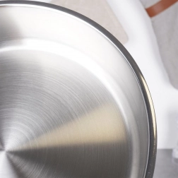 La surface lisse en inox se lave aisément à la main comme au lave-vaisselle. Le corps bien profilé de la poêle minimise l’adhérence des résidus.