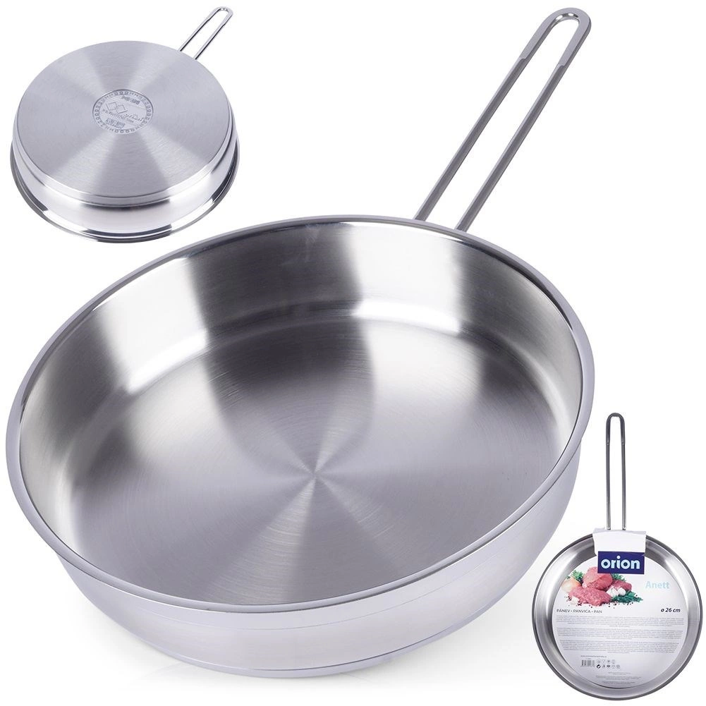 Poêle robuste en acier inoxydable ANETT de 26 cm de diamètre, bords hauts et poignée confortable, idéale pour la cuisine quotidienne comme pour un usage professionnel. Grâce à son fond akuthermique multicouche, elle accumule parfaitement la chaleur, permet une cuisson avec un minimum de matières grasses et est compatible avec tous les types de plaques, y compris l’induction. Elle est facile à nettoyer et passe au lave-vaisselle.