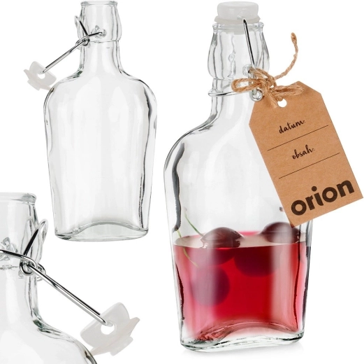 Bouteille en verre pratique de 180 ml avec fermeture à clip étanche pour un stockage des boissons sûr et élégant. Idéale pour vins maison, liqueurs, sirops et bière. Le verre épais et résistant met magnifiquement en valeur le contenu, tandis que le clip étanche évite les fuites et prolonge la fraîcheur. Dimensions de la bouteille : 9 × 4 × 20 cm.