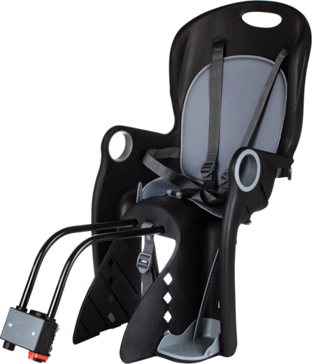 Grâce au collier de serrage rapide, le siège se monte et se démonte aisément des haubans sous la selle en quelques instants. Les sangles et les repose-pieds réglables assurent une position adaptée de l’enfant à différentes phases de croissance.
