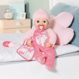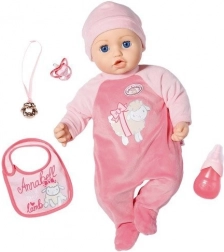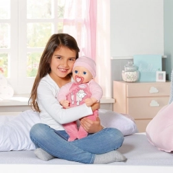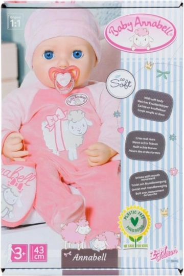 La poupée interactive Baby Annabell de 43 cm offre aux enfants une expérience authentique des soins pour bébé. Elle boit de l’eau au biberon, bouge la bouche, fait son rot après avoir bu et réagit à la tétine avec des mouvements de bouche réalistes. Après avoir été bercée, elle ferme les yeux et s’endort, sait pleurer avec des larmes et adore être bercée et chatouillée.