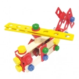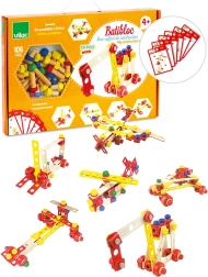 Ce jeu de construction en bois VILAC Batibloc de haute qualité est idéal comme premier set de construction pour les enfants dès 3 ans. Grâce aux pièces colorées et naturelles percées et au matériel de fixation, les enfants peuvent construire des véhicules, des avions et leurs propres modèles originaux tout en développant patience et dextérité.