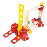 Bois massif, composants résistants et assemblage sûr avec vis et écrous – idéal pour les petits constructeurs dès 3 ans.