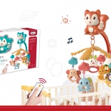 Le mobile de lit avec un adorable écureuil combine stimulation visuelle et effets calmants. Grâce au projecteur, il projette de doux motifs lumineux qui favorisent la relaxation et le sommeil. Les cinq pendentifs suspendus (hochets/mordilleurs) offrent différentes textures et sons pour développer la motricité fine et la perception sensorielle.