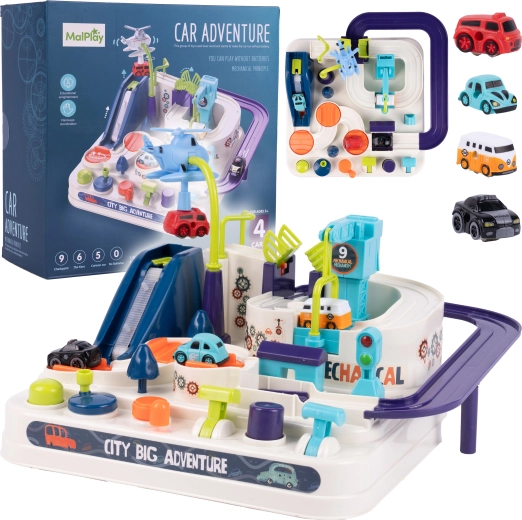 La structure robuste en plastique de très haute qualité garantit une longue durée de vie, tandis que les quatre petites voitures incluses permettent de lancer des courses immédiatement et de partager le plaisir avec des amis ou des frères et sœurs. Idéal comme cadeau qui favorise la motricité fine, la pensée logique et les compétences de coordination.