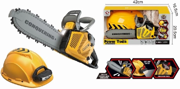 Ensemble ludique pour petits bûcherons comprenant une tronçonneuse jouet réaliste avec effets lumineux et sonores, un casque de protection pour enfants et une lampe torche. Le plastique sûr et non toxique, l’apparence fidèle et la facilité d’utilisation raviront tous les petits bricoleurs.