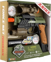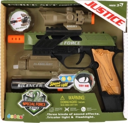 Pistolet en plastique avec lumière et son, à piles, avec accessoires