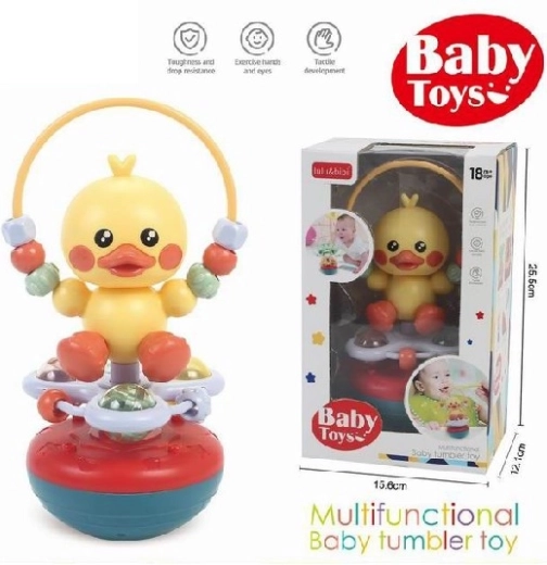 Ce joyeux caneton au style « culbuto » (jouet à bascule/balancier qui se redresse toujours) est conçu pour les petites mains des enfants. Après une légère poussée, il se balance et revient au centre, éveillant la curiosité et soutenant l’envie naturelle des enfants d’explorer le monde du mouvement.