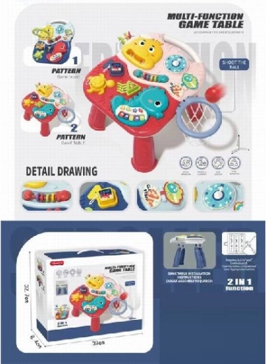 La table éducative ludique au motif Dino combine jeu et apprentissage en un seul produit. Les enfants apprécieront les effets lumineux, les fonctions sonores et le petit panier de basket, qui développent la motricité et la coordination. Sa construction légère et résistante en plastique est idéale pour la chambre d’enfant et, grâce à l’alimentation par piles, la table se transporte facilement et s’utilise partout.