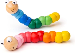 Ce petit ver coloré est un premier jouet de motricité idéal pour les petites mains. Grâce à ses segments en bois lisses et à son assemblage sécurisé, les enfants le saisissent, le font tourner et le plient facilement — ils entraînent ainsi la préhension, la coordination œil–main et la concentration. Ses couleurs gaies attirent l’attention et stimulent le jeu exploratoire.