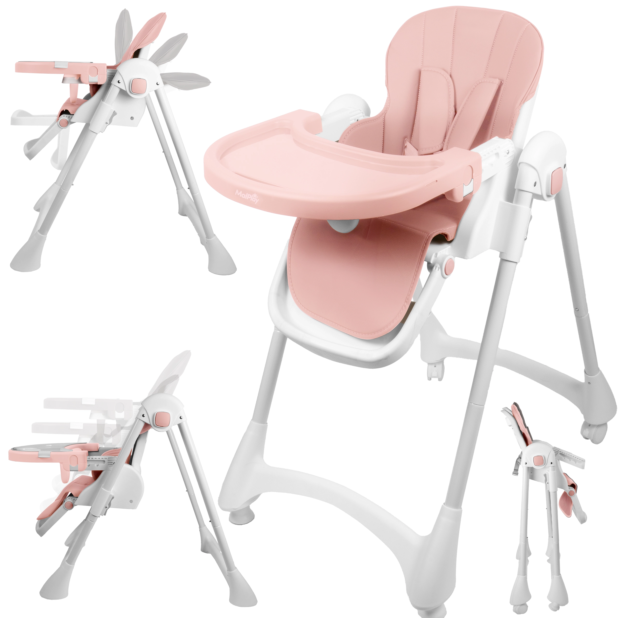 La chaise haute Deli en rose est conçue pour des repas et des moments de jeu confortables et sûrs. Grâce aux harnais 5 points avec rembourrages souples, l’enfant est maintenu fermement et confortablement, tandis que la structure robuste est conforme à la norme stricte EN 14988:2017+A1:2020.