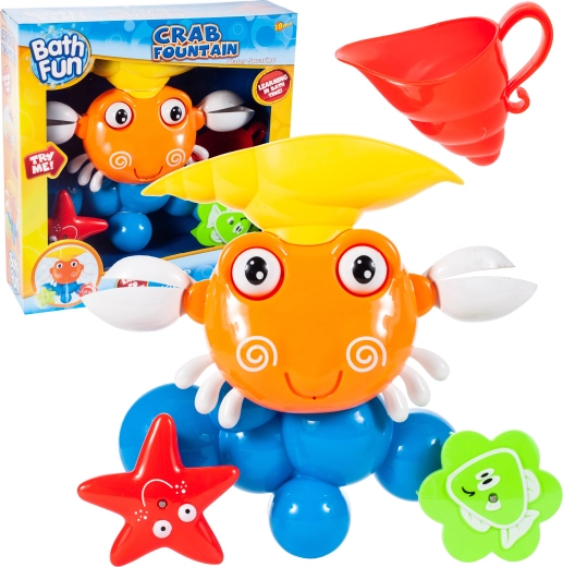 Le crabe peut être placé directement sous le jet d’eau du robinet ou utilisé avec le réservoir fourni. Le jouet est conçu pour résister à l’environnement humide et offrir aux enfants du plaisir pendant le bain, le rinçage et les jeux avec les jets d’eau.