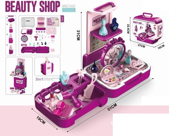 Cette mallette magique transforme n’importe quelle chambre en petit salon de beauté. Une fois ouverte, elle devient une coiffeuse bien organisée avec miroir et surface de travail, où les enfants peuvent ranger tous leurs accessoires. Grâce à ses dimensions compactes, la mallette est idéale à la maison comme en voyage.