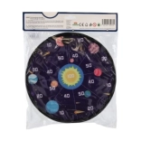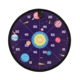 Un côté de la cible est conçu avec des couleurs attrayantes et des numéros pour un jeu traditionnel, tandis que l'autre côté offre un thème spatial avec des images de planètes. Les enfants ont la possibilité de pratiquer les mathématiques en additionnant les points obtenus à chaque lancer.