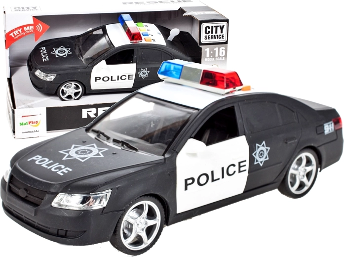 Entrez dans l’univers des interventions policières avec ce modèle de voiture de police finement détaillé à l’échelle 1:16. Le jeu devient encore plus amusant grâce à plusieurs effets sonores réalistes – du klaxon à la sirène, en passant par le verrouillage et la marche arrière. Idéale pour jouer à la maison ou comme pièce de collection.