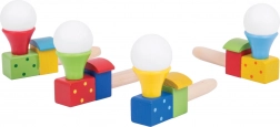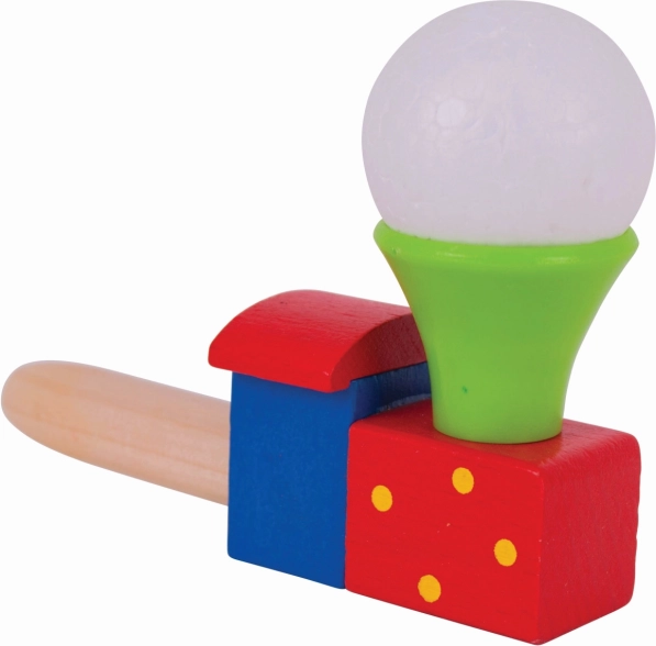 Cette locomotive en bois colorée avec petit ballon transforme un simple souffle en petit miracle. Les enfants entraînent leur souffle et son contrôle, observent la petite balle blanche flotter au-dessus de la cheminée et développent ainsi coordination et patience. Idéale pour de courtes pauses ludiques comme pour un jeu plus long et concentré.
