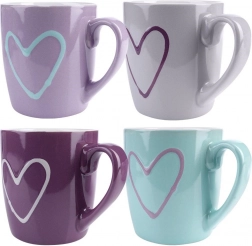 Mugs en céramique avec cœur 350 ml, lot de 4 pièces