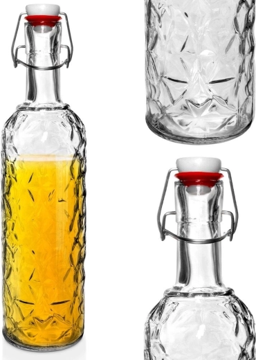 Cette bouteille décorative en verre avec clip rabattable est un excellent choix pour les boissons maison. La fermeture brevetée avec joint en silicone garde les boissons fraîches plus longtemps et empêche toute fuite en toute sécurité. Grâce à sa forme haute et élancée (hauteur env. 34 cm, diamètre 8,5 cm), elle tient bien en main et permet de verser facilement.