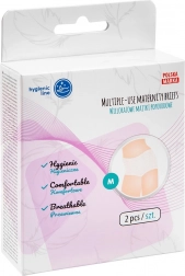 Grâce à la bordure élastiquée douce à la taille et aux cuisses, les culottes restent bien en place, ne compriment pas et s’adaptent à la silhouette. La taille M convient pour un tour de hanches d’environ 90 cm. Le pack de 2 pièces est idéal pour la maternité comme pour un usage à domicile.