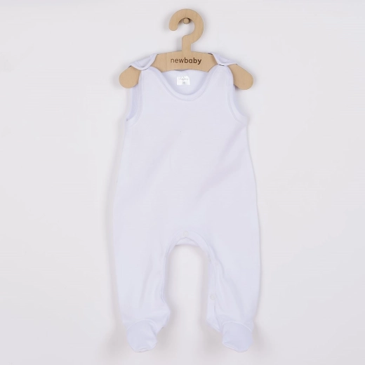 Confortable grenouillère bébé blanche NEW BABY Classic en 100 % coton de qualité, idéale pour un usage quotidien. Offre un matière douce et respirante, une fermeture à pressions facile sur les bretelles et entre les jambes, et une coupe pratique pour une liberté de mouvement de bébé.