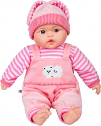 La poupée PlayTo Agatka est une excellente compagne pour le jeu quotidien. Son corps doux invite aux câlins, tandis que la tête, les mains et les pieds en caoutchouc paraissent réalistes. Son beau visage souriant avec des yeux colorés et de longs cils rappelle un vrai bébé.