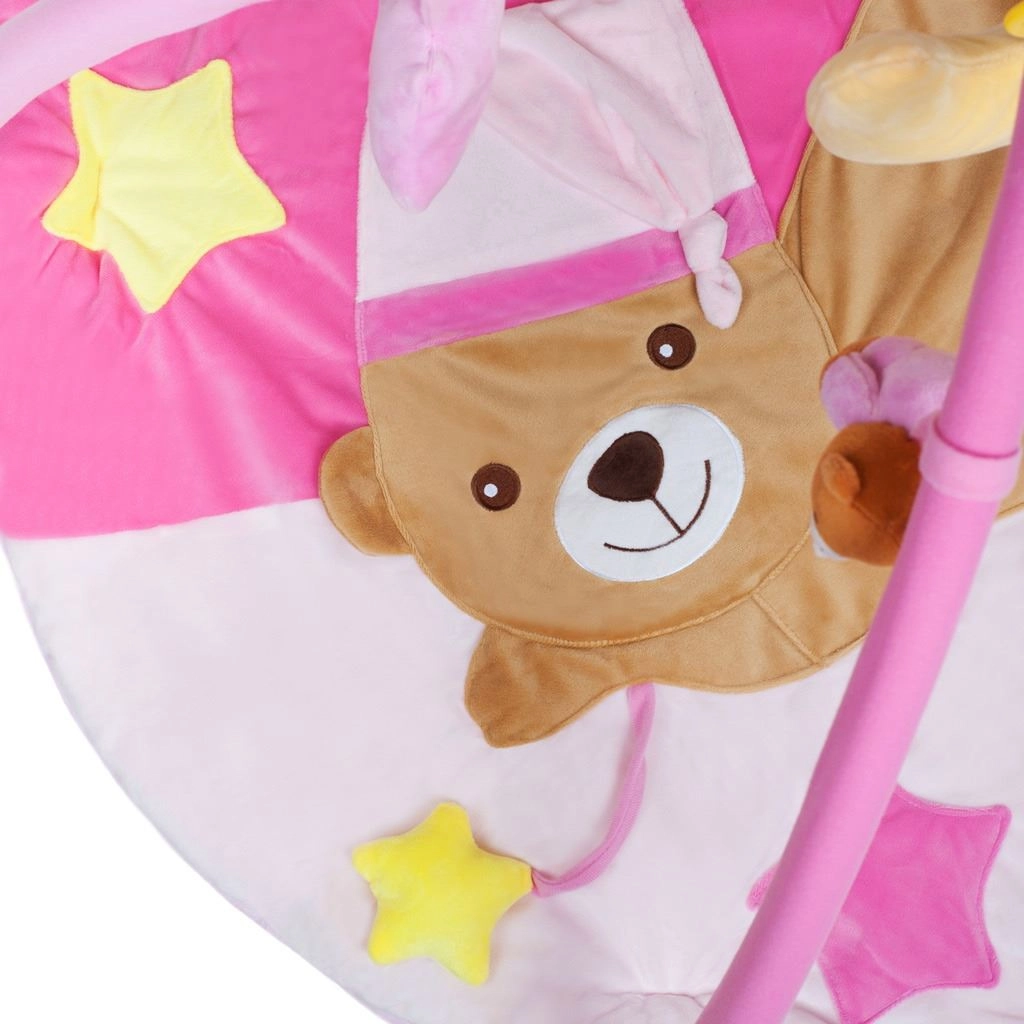 Ce tapis d’éveil éducatif original de couleur rose avec un adorable ours est conçu pour stimuler la vue, le toucher et l’ouïe. La lune renferme un module musical qui, lorsqu’on appuie dessus, joue de douces mélodies, tandis que les parties bruissantes et mobiles éveillent la curiosité de bébé. Le rembourrage moelleux garantit un confort maximal et un espace sécurisé pour ses premières découvertes.
