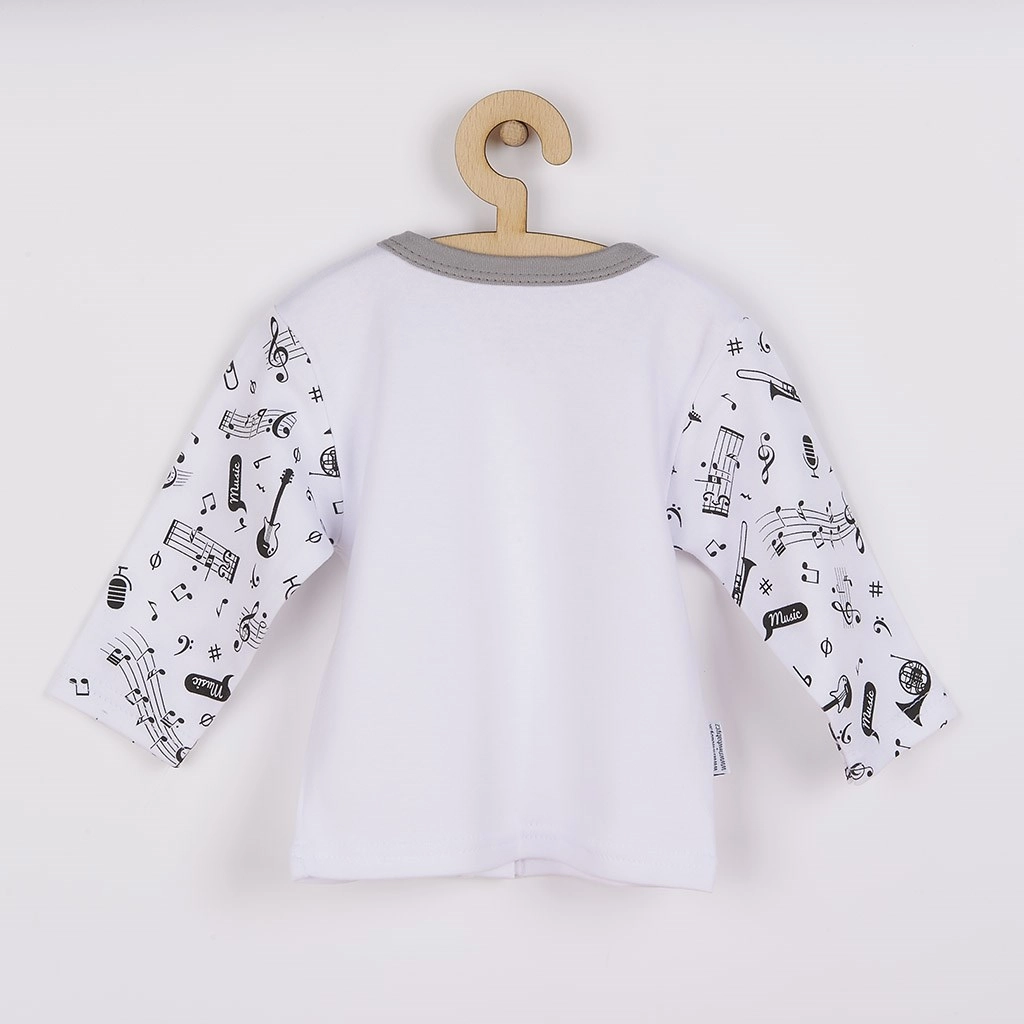 La veste stylée NEW BABY Music est fabriquée en coton doux et respirant, respectueux de la peau délicate des enfants. Le corps uni est complété par des manches ludiques imprimées de petites notes et d’instruments de musique, ce qui attire l’œil dès le premier regard.