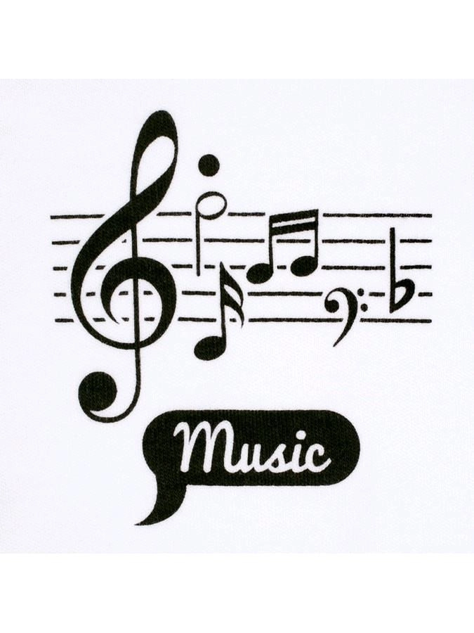 - Design : chemise unie avec imprimé de notes sur les manches et inscription Music