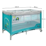 Pour une manipulation aisée, il est équipé de roulettes avec frein intégré, d’une ouverture zippée pour le jeu et un accès facile, et d’un matelas pliant doux de 120 × 60 cm. Son design moderne aux motifs joyeux ravira enfants et parents. Le produit répond aux strictes normes européennes de sécurité EN 716.