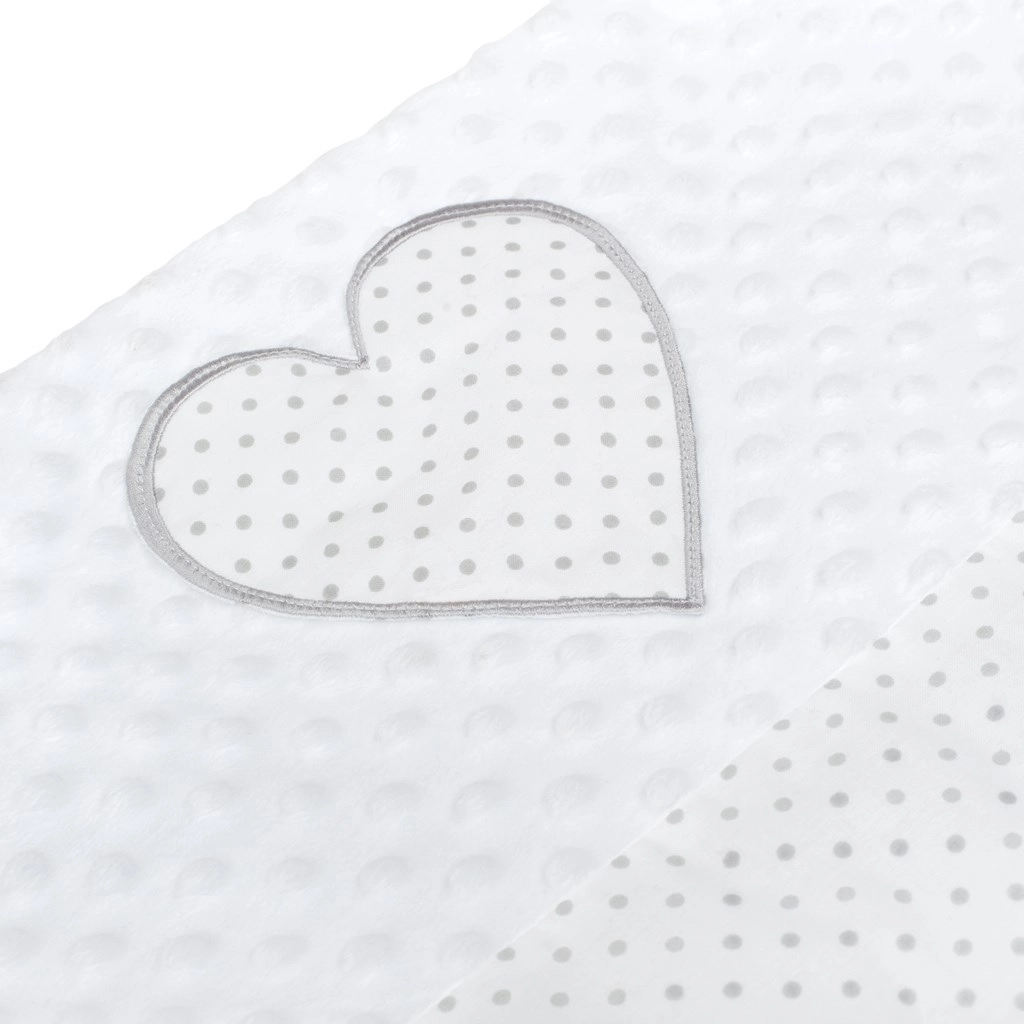 Le nid de luxe NEW BABY Cœur a été conçu pour un sommeil paisible et le confort du bébé durant les premiers mois. Il combine une étoffe minky douce à structure à pois pour une stimulation sensorimotrice délicate et du coton 100 % respirant de l’autre côté. Grâce à son utilisation réversible, vous changez facilement l’aspect et la sensation du matériau.